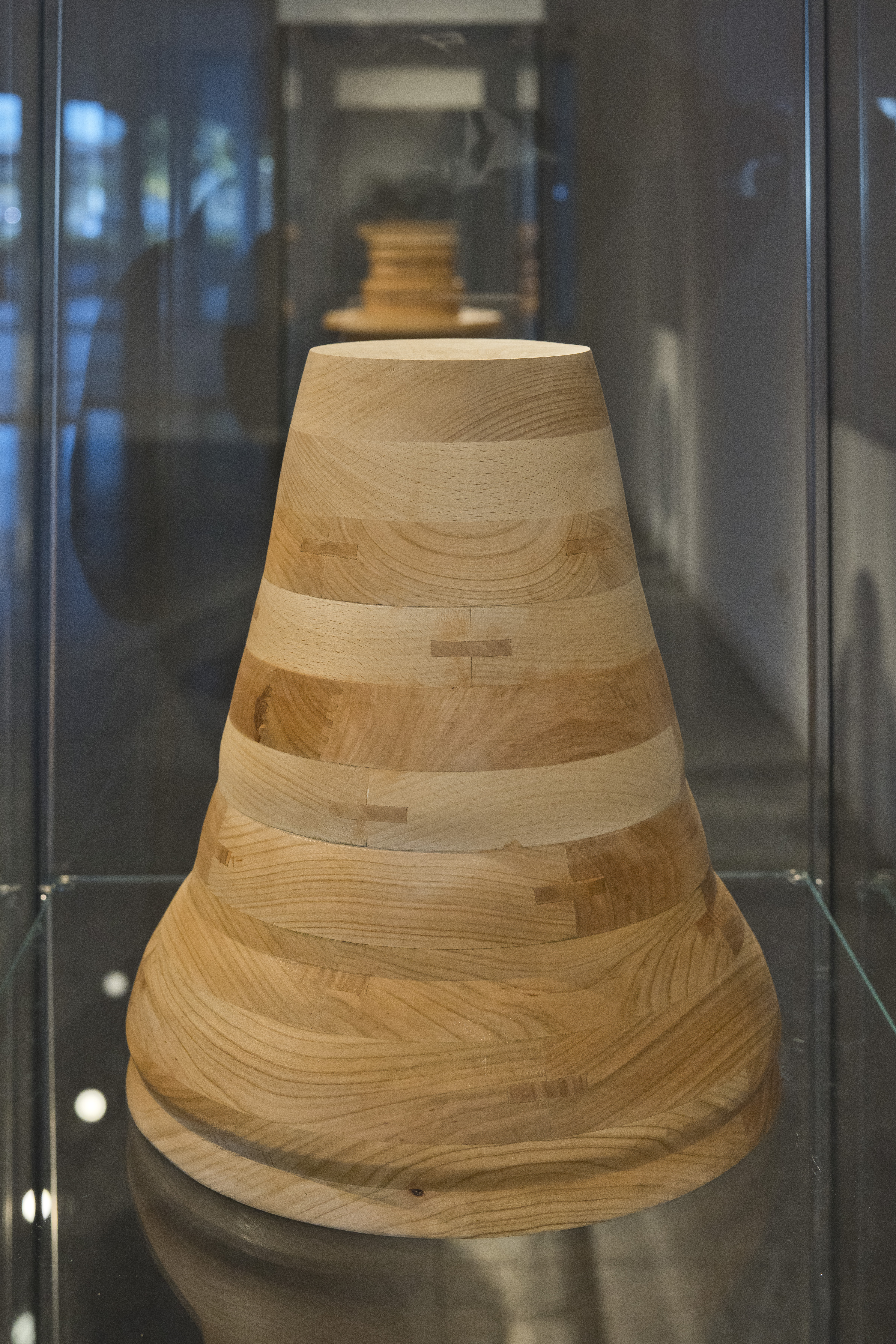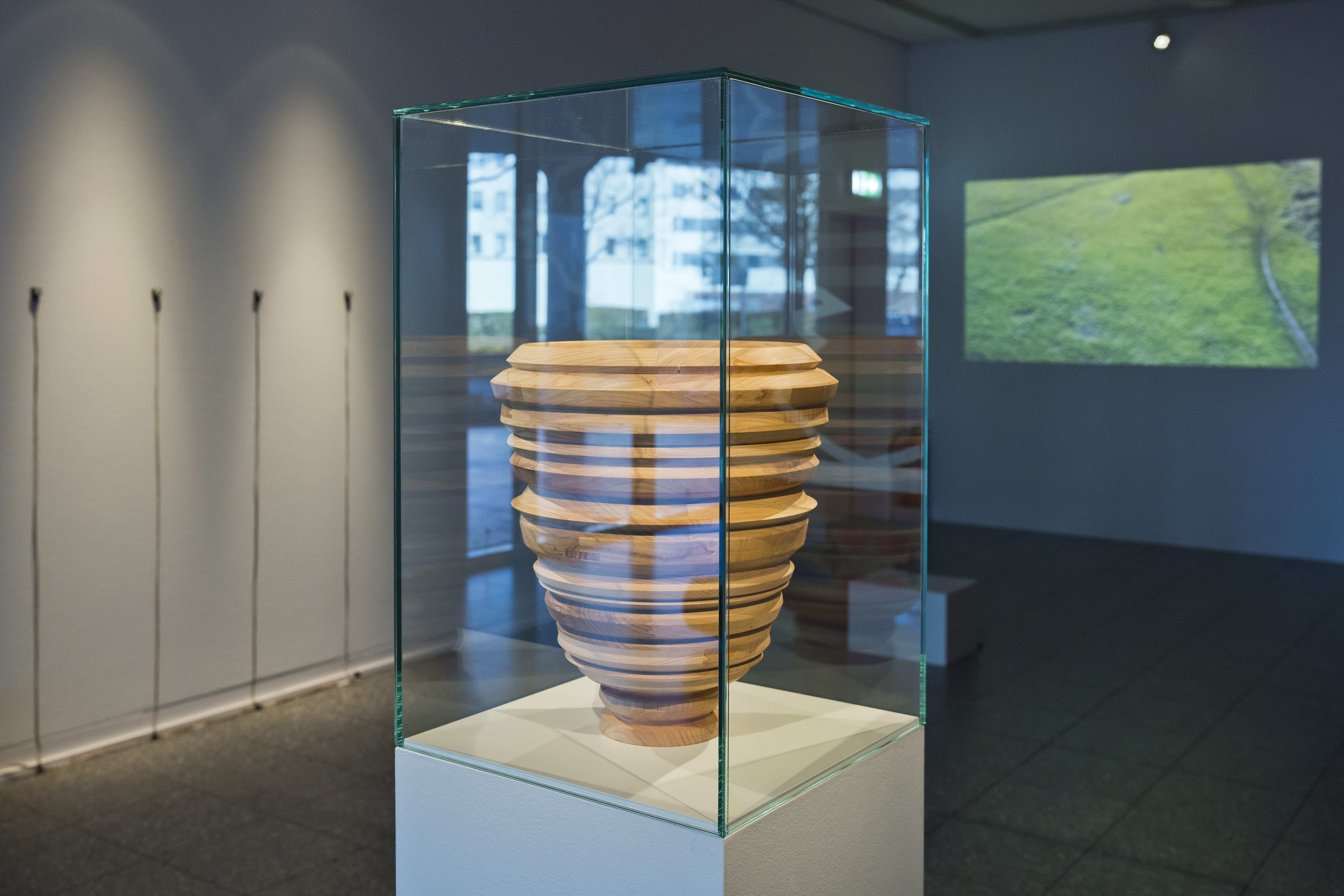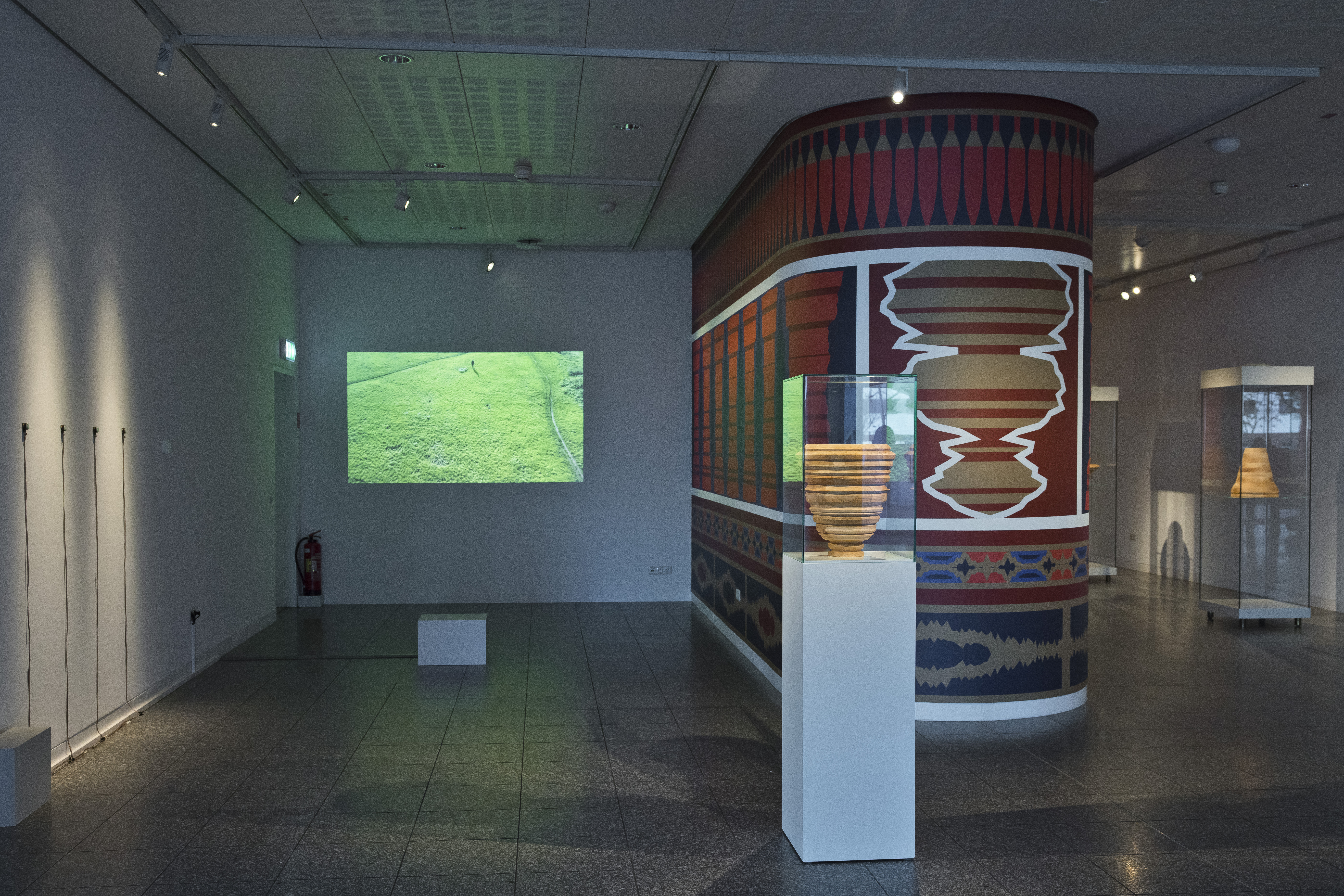 Dabei greift die Künstlerin mit Holz- und Keramikskulpturen, die an historische Vasen und Vorratsbehälter, und in Drucken, die entfernt an Wandteppiche und antike Säulenbemalungen erinnern, traditionelle kunsthandwerkliche Techniken wie Töpfern, Schnitzen, Bemalen und Weben auf. Die Objekte sind jedoch nicht handgemacht, vielmehr sind ihre Formen, ornamentale Rotationskörper, maschinell errechnet und erstellt. Sie basieren auf computergenerierten Übersetzungen von offiziellen Daten der Weltbank, der UNESCO, UNO und EU, die globale Prozesse der Gegenwart erfassen, in zwei- und dreidimensionale Strukturen. Diese Objekte ergänzt die Künstlerin durch ein Video und eine Soundinstallation, zeitgenössische Medien, in der die zugrundeliegenden Daten in Licht- und Tonwellen transformiert sind.